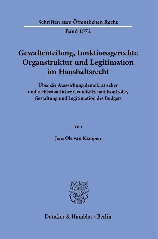 Gewaltenteilung, funktionsgerechte Organstruktur und Legitimation im Haushaltsrecht (německy)