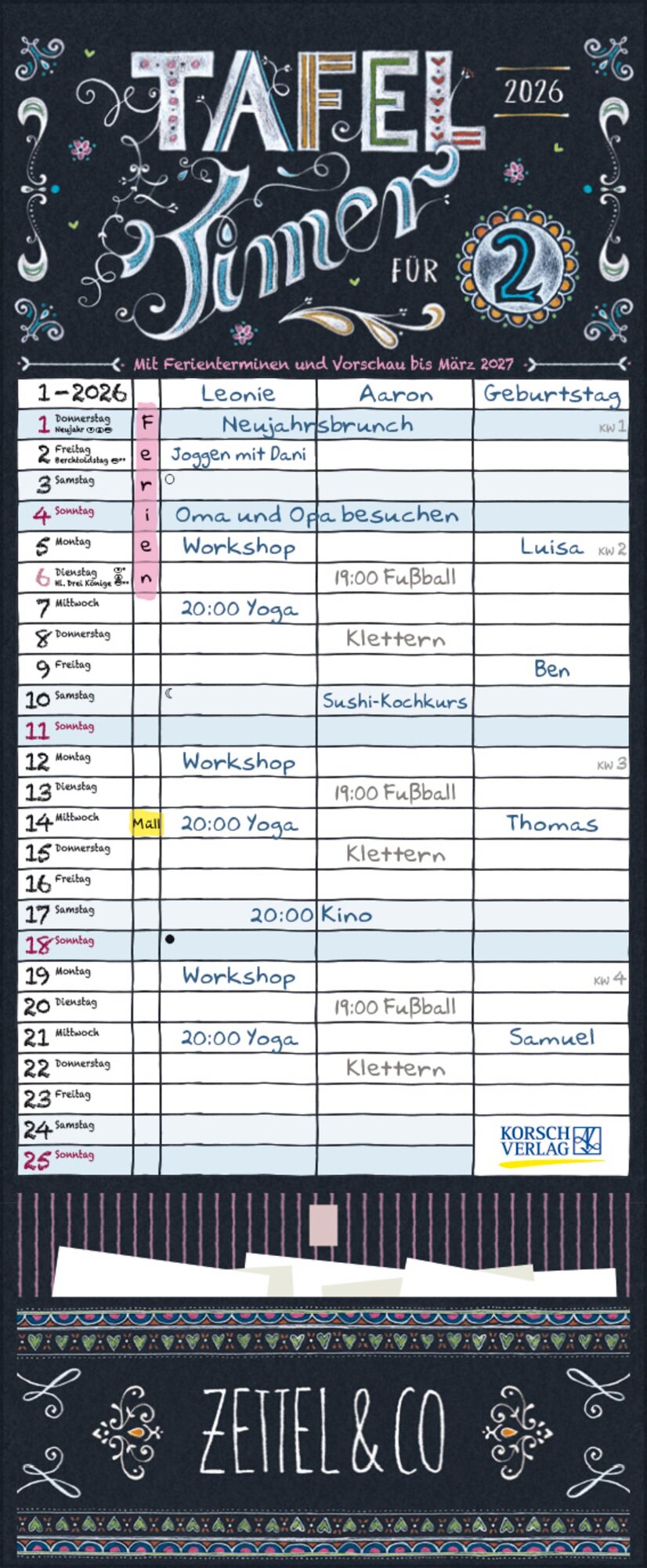 Tafeltimer für 2 mit Zetteltasche 2026 (německy)