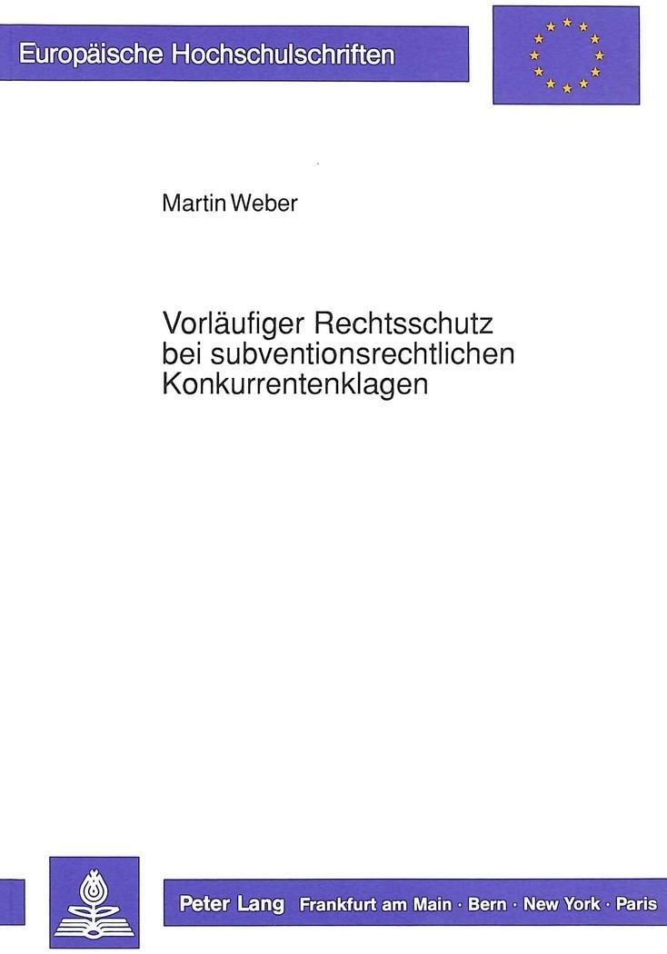 Vorläufiger Rechtsschutz bei subventionsrechtlichen Konkurrentenklagen (německy)