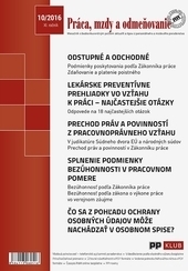 Publikácia obsahuje nasledovné témy: Odstupné a odchodné - podmienky poskytovania podľa Zákonníka práce, zdaňovanie a platenie poistného, Lekárske preventívne prehliadky vo vzťahu k práci - najčastejšie otázky, Prechod práv a povinností z pracovnoprávneho vzťahu v judikatúre Súdneho dvora EÚ a národných súdov, Splnenie podmienky bezúhonnosti v pracovnom pomere, Čo sa z pohľadu ochrany osobných údajov môže nachádzať v osobnom spise?, Pracovný pomer na kratší pracovný čas, Účtovanie v peňažnom denníku v stĺpci „Poistné a príspevky“, Opatrne pri hromadnom čerpaní dovolenky,...