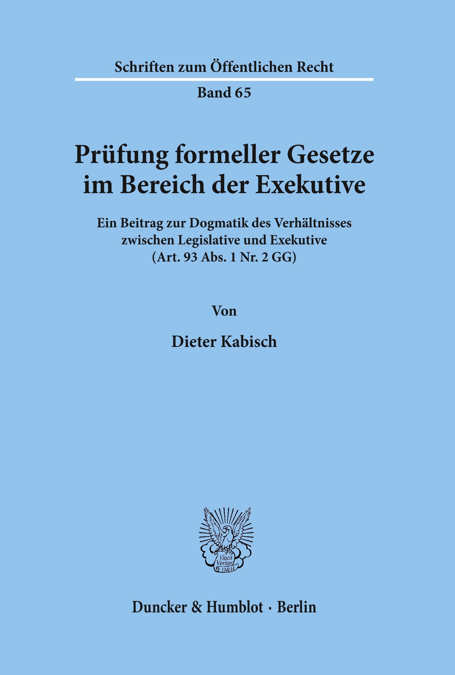 Prüfung formeller Gesetze im Bereich der Exekutive. (německy)
