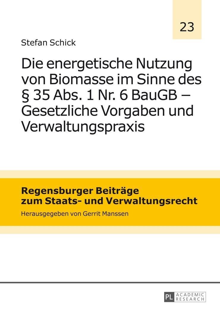 Die energetische Nutzung von Biomasse im Sinne des § 35 Abs. 1 Nr. 6 BauGB - Gesetzliche Vorgaben und Verwaltungspraxis (německy)
