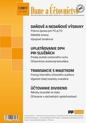 Publikácia obsahuje nasledovné témy: Základy transferového oceňovania v príkladoch: kontrolovaná transakcia a korešpondujúca úprava základu dane, Daňové a nedaňové výdavky, Služby poskytované cestovnými kanceláriami a agentúrami, Interný (účtovný) audit - transakcie s majetkom v účtovnej...