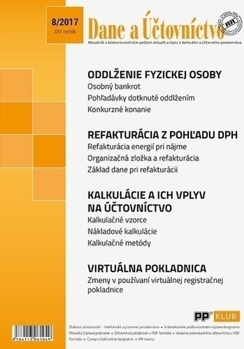 Publikácia obsahuje nasledovné témy: Oddlženie fyzickej osoby z daňového pohľadu, Oznamovacia povinnosť po vykonaní korešpondujúcej úpravy základu dane + test, Výdavky na bezpečnosť a ochranu zdravia pri práci, Refakturácia, Kalkulácie a ich vplyv na účtovníctvo,...
