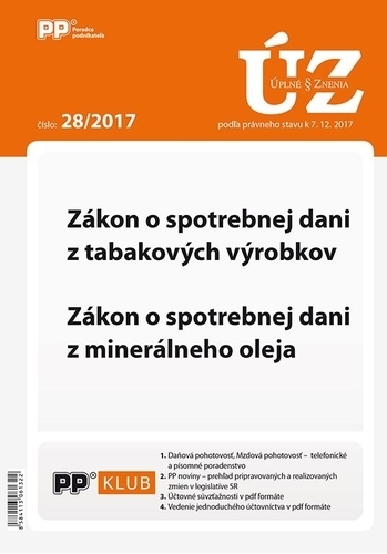 Publikácia obsahuje nasledovné témy: Zákon o spotrebnej dani z tabakových výrobkov, Zákon o spotrebnej dani z minerálneho oleja podľa právneho stavu k 7. 12. 2017.