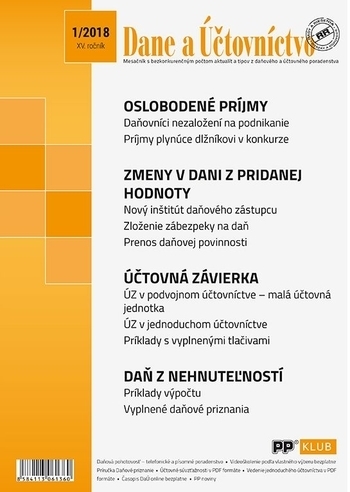 Publikácia obsahuje nasledovné témy: Príjmy oslobodené od dane z príjmov právnických osôb, Zmeny zákona o DPH v roku 2018, Účtovná závierka v podvojnom účtovníctve za rok 2017 - malá účtovná jednotka, Účtovná závierka v jednoduchom účtovníctve za rok 2017,...