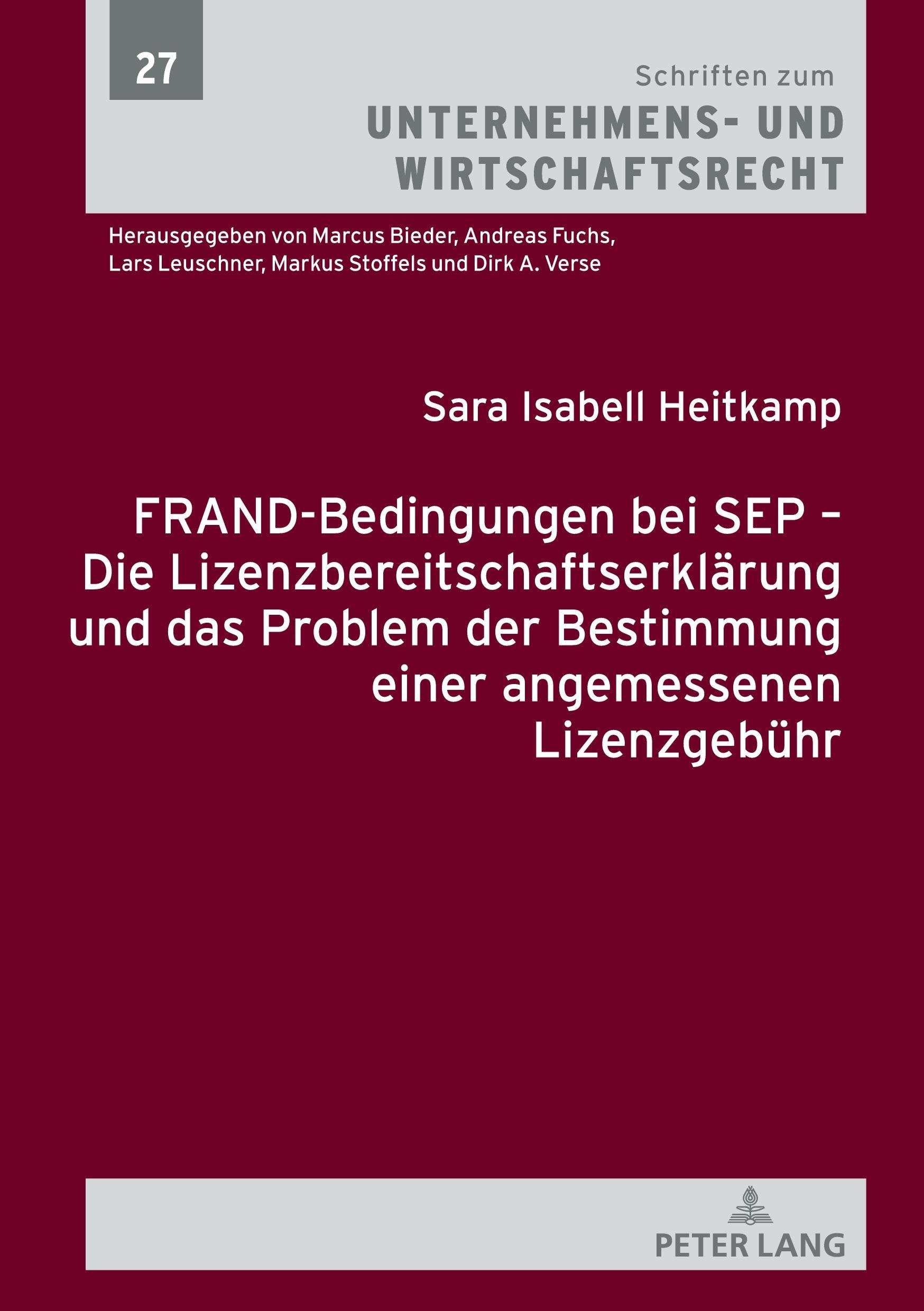 FRAND-Bedingungen bei SEP - Die Lizenzbereitschaftserklärung und das Problem der Bestimmung einer angemessenen Lizenzgebühr (německy)