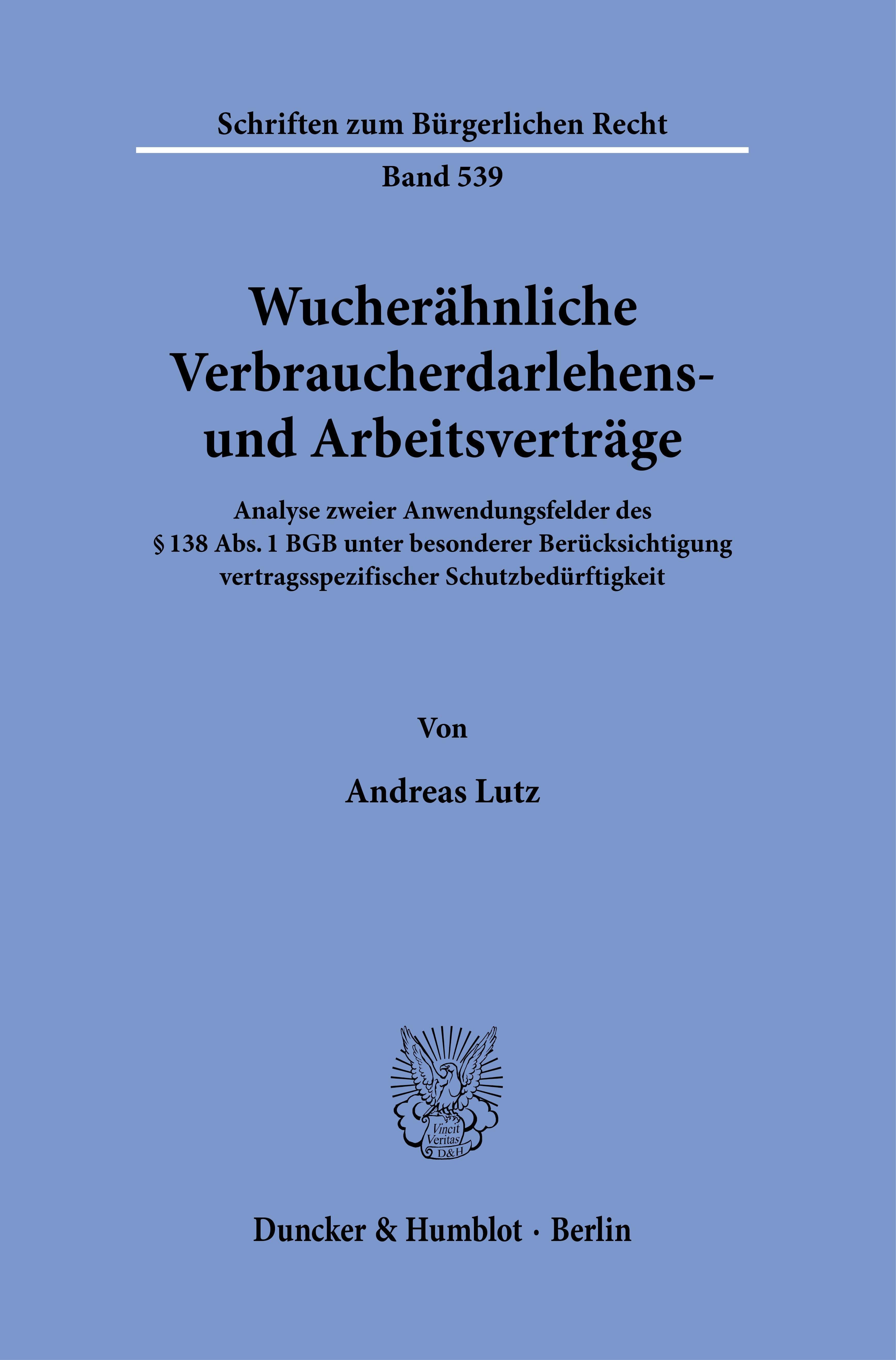 Wucherähnliche Verbraucherdarlehens- und Arbeitsverträge. (německy)