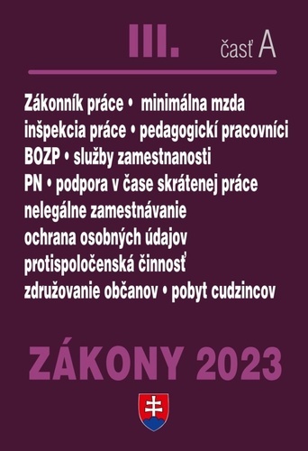 Zákony III časť A 2023 - Pracovnoprávne vzťahy a BOZP (slovensky)