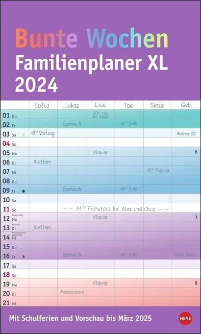 Bunte Wochen Familienplaner XL 2024 (německy)