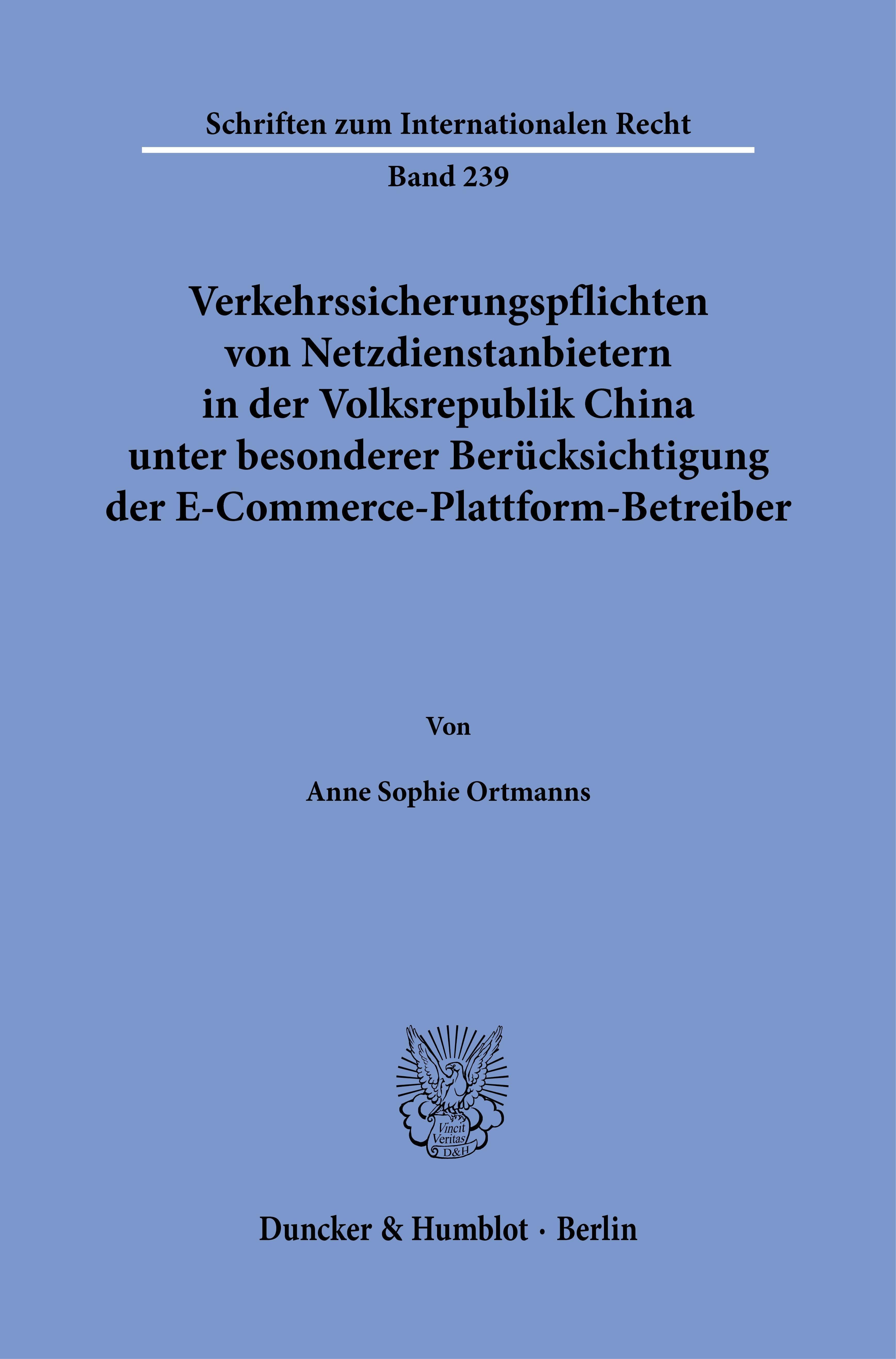 Verkehrssicherungspflichten von Netzdienstanbietern in der Volksrepublik China unter besonderer Berücksichtigung der E-Commerce- (německy)