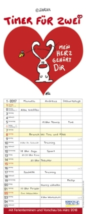 Nic, der freche 'Hundehase', und seine Freundin Biene begleiten Paare liebevoll und mit viel Witz durch das Jahr. Mit 3 Spalten zum Eintragen, Ferienterminen und Vorschau bis März des Folgejahres.