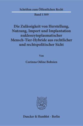 Die Zulässigkeit von Herstellung, Nutzung, Import und Implantation nukleozytoplasmatischer Mensch-Tier-Hybride aus rechtlicher u (německy)