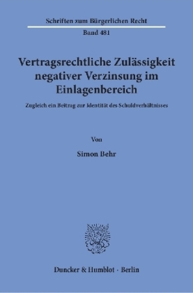 Vertragsrechtliche Zulässigkeit negativer Verzinsung im Einlagenbereich. (německy)