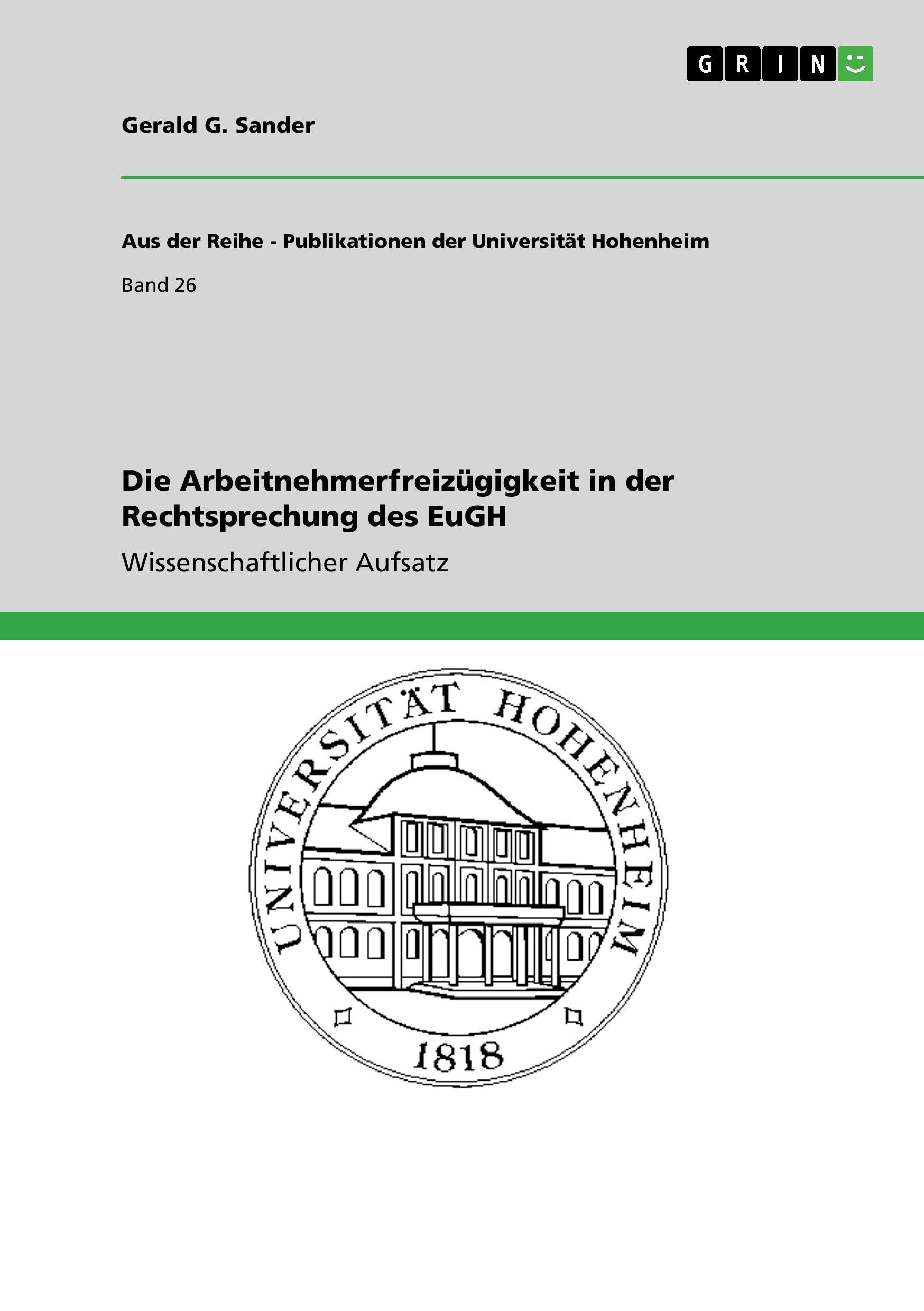 Wissenschaftlicher Aufsatz aus dem Jahr 2006 im Fachbereich Jura - Europarecht, Völkerrecht, Internationales Privatrecht, Note: keine, Universität Hohenheim (Rechtswissenschaft), Sprache: Deutsch, Abstract: Das Jahr 2006 ist zum Europäischen Jahr der Mobilität der Arbeitnehmer erklärt worden....