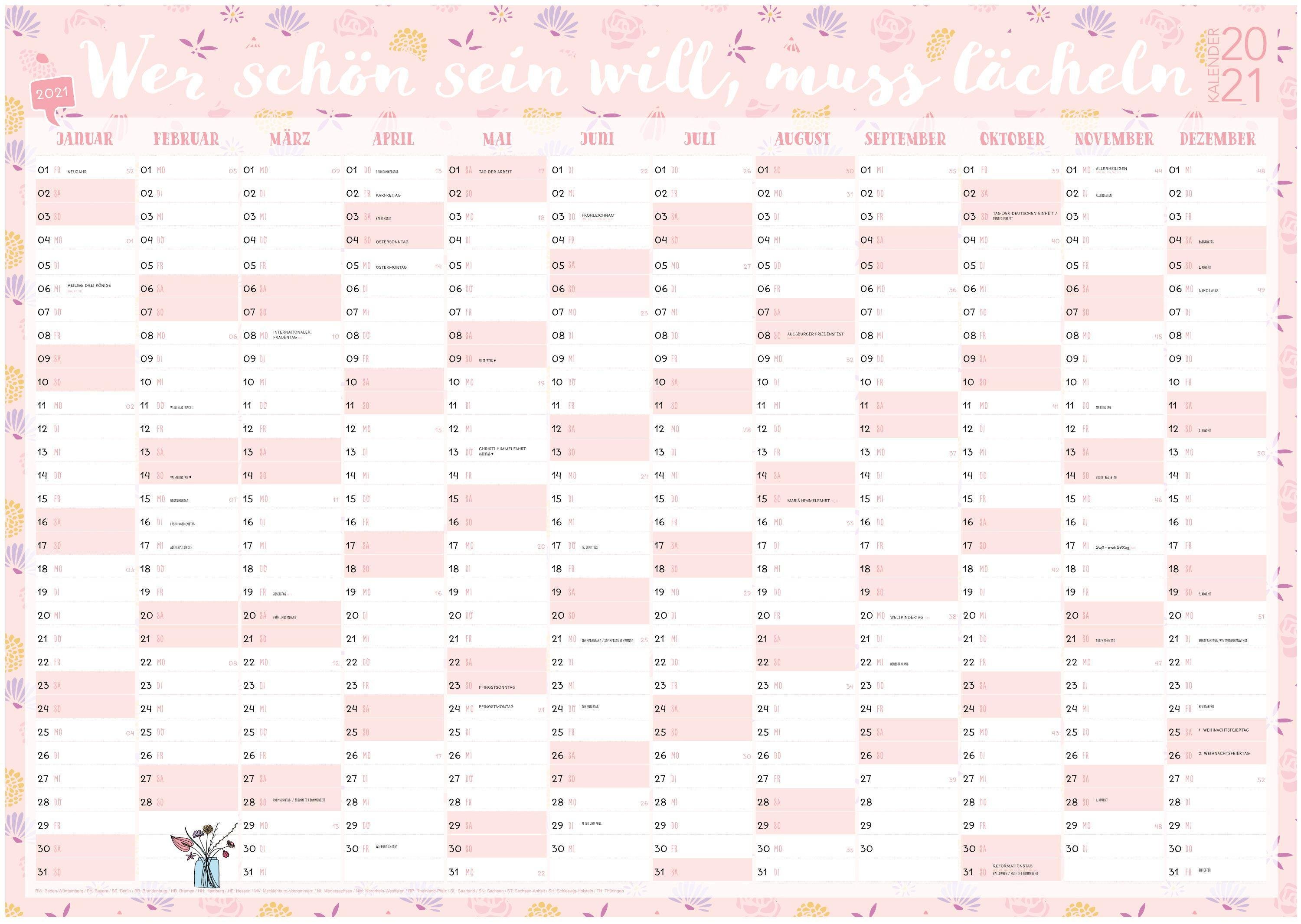 Großer rosa Wandkalender 2021 in DIN A1 (84 x 59,4 cm) für zu Hause oder das Büro. Rosa XXL Wandplaner, Jahreskalender für 12 Mo