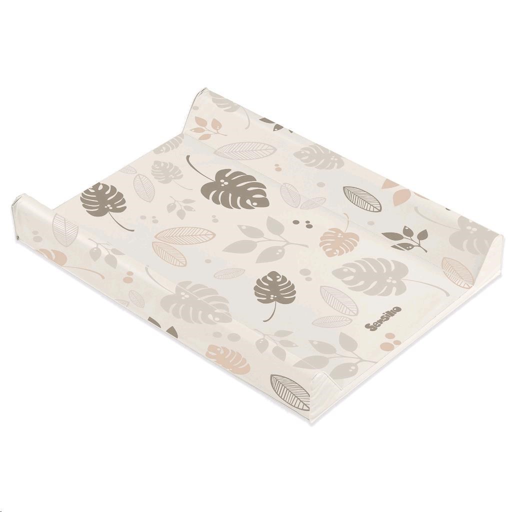 Přebalovací podložka Sensillo s profilovanými okraji z nepromokavého plastového materiálu, vyplněná molitanem, zdobená veselým obrázkem. Rozměr: šxd cca 49x70 cm, vnitřní rozměr: šxd cca 33,5x70 cm. Složení: PVC, výplň: polyuretanová pěna.