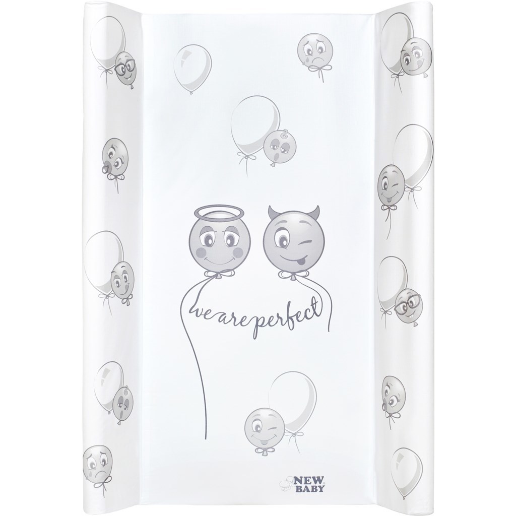 Praktický tvarovaný přebalovací nástavec s moderním dizajnem New Baby Emotions z nepromokavého, plastového materiálu s obrázky smajlíků, vyjadřujících různé emoce. Nástavec je vyplněn polyesterem a má vyvýšené boční strany. Nástavec má spodní tvrdou desku, lze ho přišroubovat na postýlku nebo umístit na přebalovací stojan. Je vyroben z nejkvalitnější certifikované fólie, která neobsahuje žádné škodlivé látky a je citlivá k nejjemnější dětské pokožce. Rozměr: cca 50x70 cm, tloušťka cca 2,5 cm, výška hran 8,5 cm.