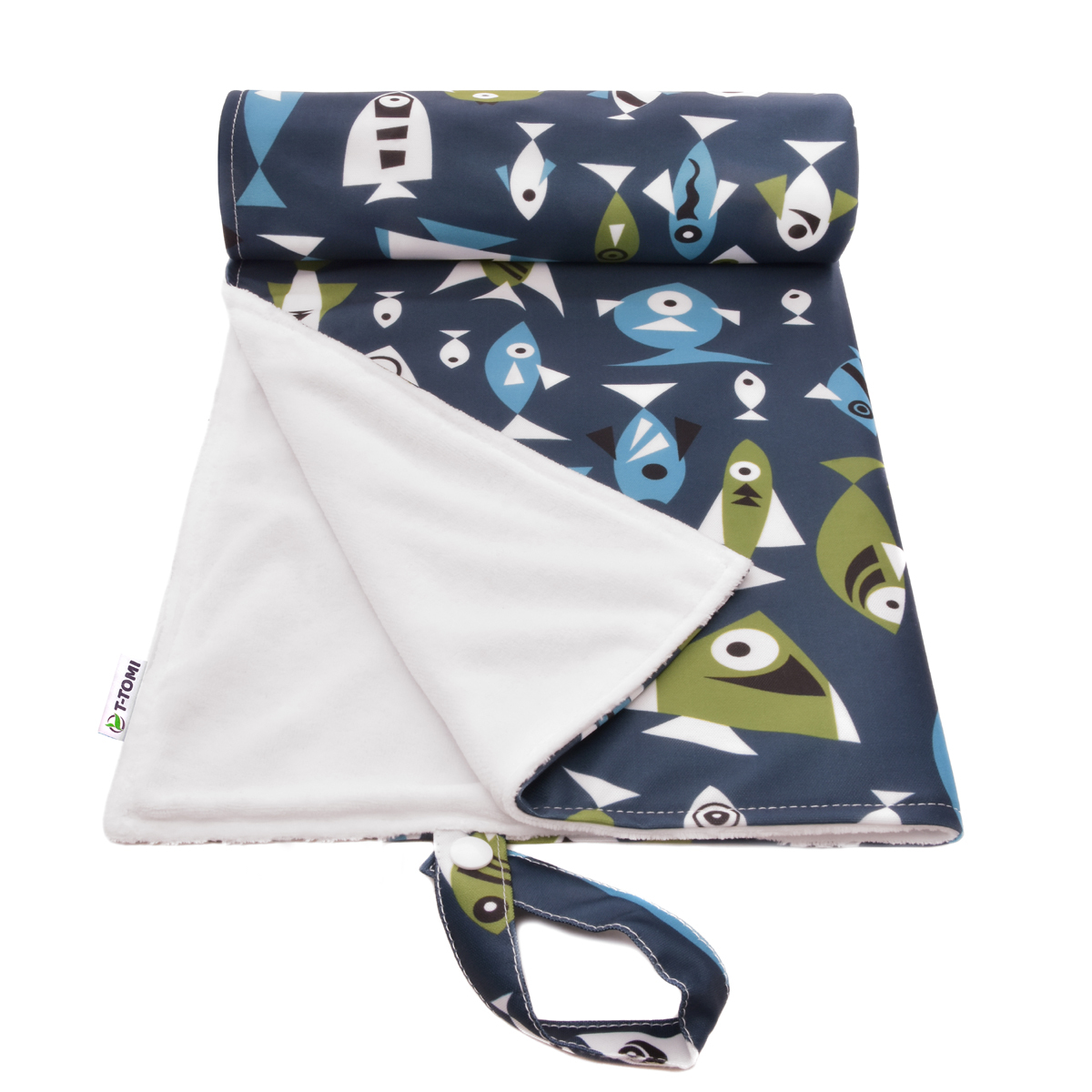 100% polyester s PUL zátěrem dotyková vrstva - kojenecký plyš rozměr 50 x 70 cm praktické ucho s patentkou všestranné využití moderní design