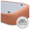 Bezpečná díky robustní desce, protiskluzovým nožičkám a vyvýšeným bočním stranám proti přetočení. Pěna přebalovací podložky je měkká, podporuje přirozenou polohu vleže a udržuje vaše dítě v teple během přebalování, a to i na cestách. Přebalovací podložka je stabilní a bezpečná. Zadní část, která je mírně vyvýšená, tvoří robustní deska se čtyřmi nožičkami, které vytvářejí další vzduchový polštář mezi přebalovací podložkou a podlahou. Zaoblené hrany chrání hlavičku dítěte a zvýšené okraje poskytují dodatečnou ochranu proti přetočení.