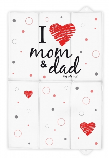 Cestovní přebalovací podložka, měkká, I Love, Nellys, 60x40cm, bílá/červena