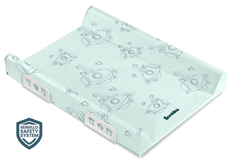 Przewijak usztywniany Sensillo z wesołymi nadrukami, został przygotowany z myślą o komfortowej pielęgnacji najmłodszych. Załączone do zestawu nóżki pozwalają na bezpieczny i stabilny montaż bezpośrednio na łóżeczku o szerokości 60 cm. Przewijak może być również zamontowany na komodzie lub innym stabilnym podłożu. Przewijak wyróżnia się innowacyjnym systemem bezpieczeństwa Sensillo Safety System, który zapobiega wypadnięciu dziecka, dzięki dodatkowym bocznym wzmocnieniom. Do produkcji użyliśmy najwyższej jakości materiałów zapewniających maksymalne bezpieczeństwo i komfort użytkowania. Ceratka, którą pokryty jest przewijak niemowlęcy Sensillo jest w pełni bezpieczna dla zdrowia dziecka - nie zawiera ftalanów, metali ciężkich oraz innych szkodliwych substancji.