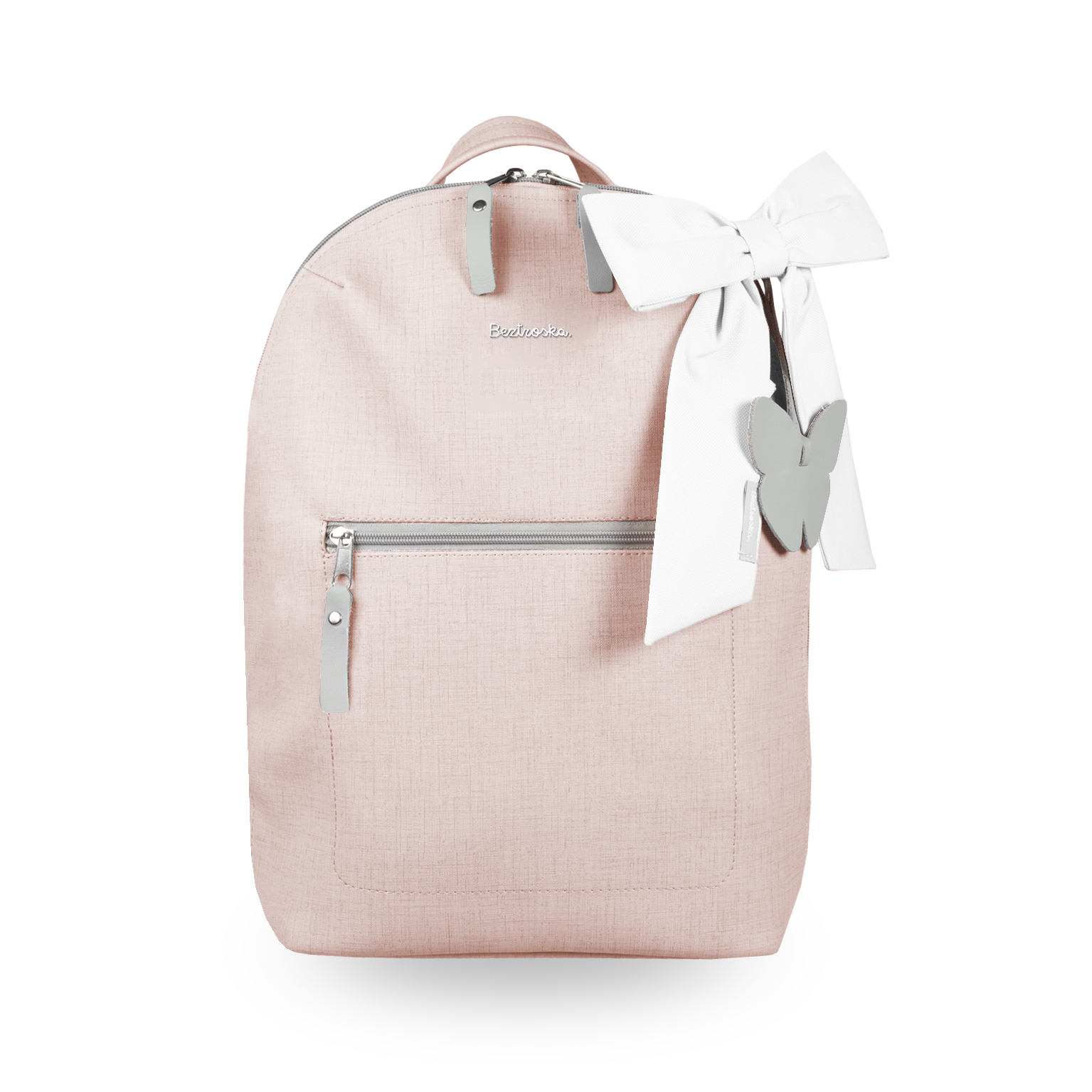 Batůžek má kovová očka pro připevnění pásků se suchým zipem - pro připevnění na kočárek. Součástí jsou i nastavitelné ramenní popruhy - pro nošení na zádech a praktická ucha pro nošení v ruce.