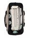 Uvnitř tašky najdete množství kapes a přihrádek, voděodolnou kapsu pro uložení vlhkých předmětů a dvě termoizolační kapsy pro láhve. Široký způsob otevírání tašky usnadňuje orientaci v uloženém obsahu. Na vnější straně najdete kapsy s uzavíráním na zip i kapsu pro uložení láhve. Součástí tašky je i odnímatelné pouzdro na drobnosti a přebalovací podložka.
