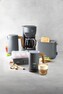 Překapávač na kávu nebo čaj ve stylovém šedém designu s automatickým vypnutím při nečinnosti. Elegantní design doplňuje skleněná konvice s ukazatelem hladiny a stylovou rukojetí ve vzhledu dřeva.
