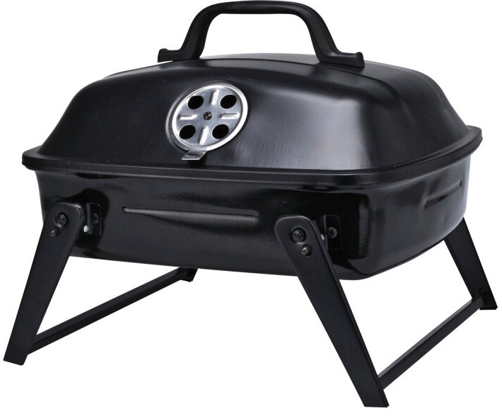 Přenosný gril na dřevěné uhlí s víkem 37 x 32 cm