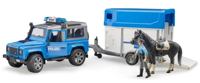 Bruder Policejní Land Rover s přepravníkem na koně a policistou