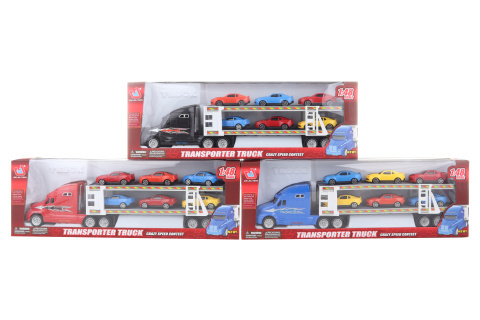 Plastový kamion s autíčky. Balení obsahuje 6 aut. Rozměry kamionu cca 37 x 9 x 6 cm. Rozměry balení cca 43 x 14,5 x 7 cm. Věk 3+