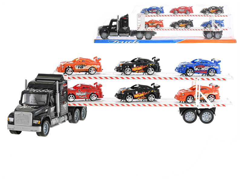 Auto přepravní 56cm na setrvačník s auty 6ks 10cm na volný chod v krabičce