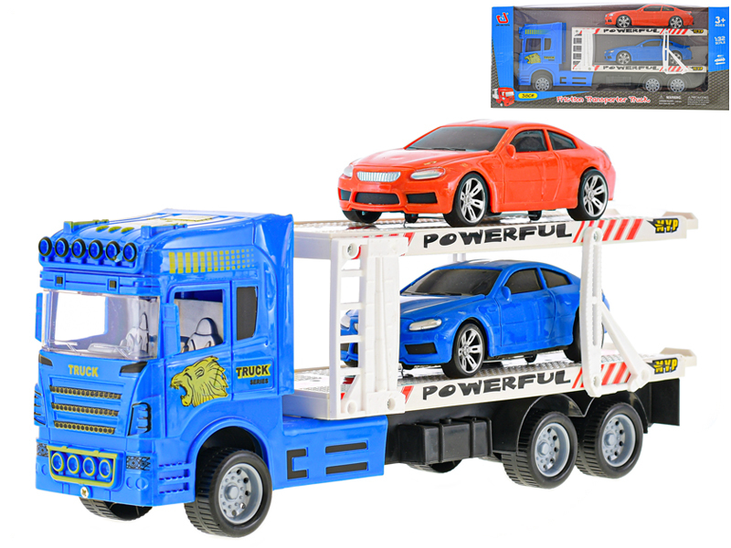 Auto přepravní 32cm na setrvačník se 2 auty 14cm na volný chod v krabičce