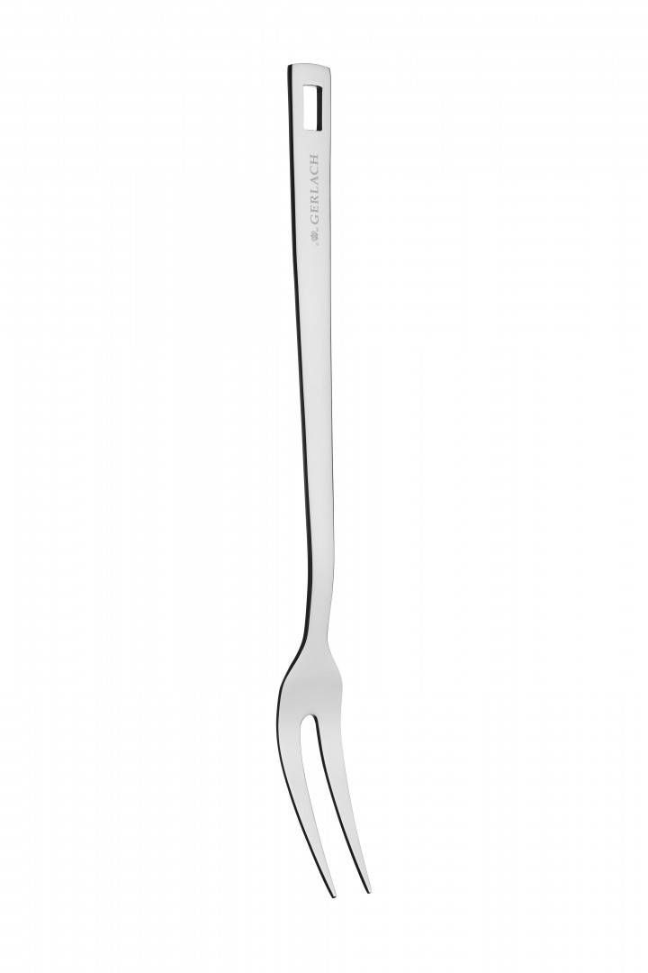 Widelec kucharski Gerlach SOLID to trwałe i funkcjonalne narzędzie kuchenne, idealne dla miłośników grillowania i gotowania większych kawałków mięsa. Wykonany z wysokiej jakości stali nierdzewnej, widelec charakteryzuje się dużą odpornością na korozję oraz odkształcenia. Dwa ostre zęby widelca umożliwiają łatwe nabijanie i obracanie mięsa, warzyw oraz innych potraw, zarówno w kuchni, jak i na grillu.Widelec posiada ergonomiczny uchwyt z otworem, co pozwala na wygodne zawieszenie go na haczyku, zapewniając porządek i łatwy dostęp podczas gotowania. Dzięki polerowanej powierzchni, widelec jest łatwy do czyszczenia i można go myć w zmywarce, co zwiększa wygodę użytkowania. Akcesoria z linii SOLID są również odporne na wysokie temperatury i doskonale nadają się do intensywnego użytkowania.