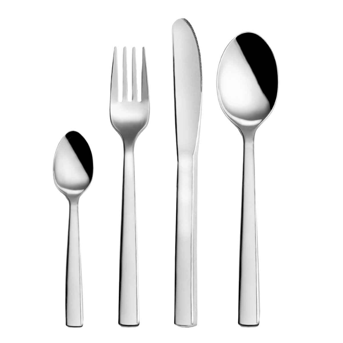 Příbor jídelní - 24 ks s povrchem z lesklého nerezu. Rozměry - d.: lžíce - 19,5 cm, vidlička - 19,5 cm, nůž - 22 cm, lžička - 14,5 cm. Materiál: nerez.