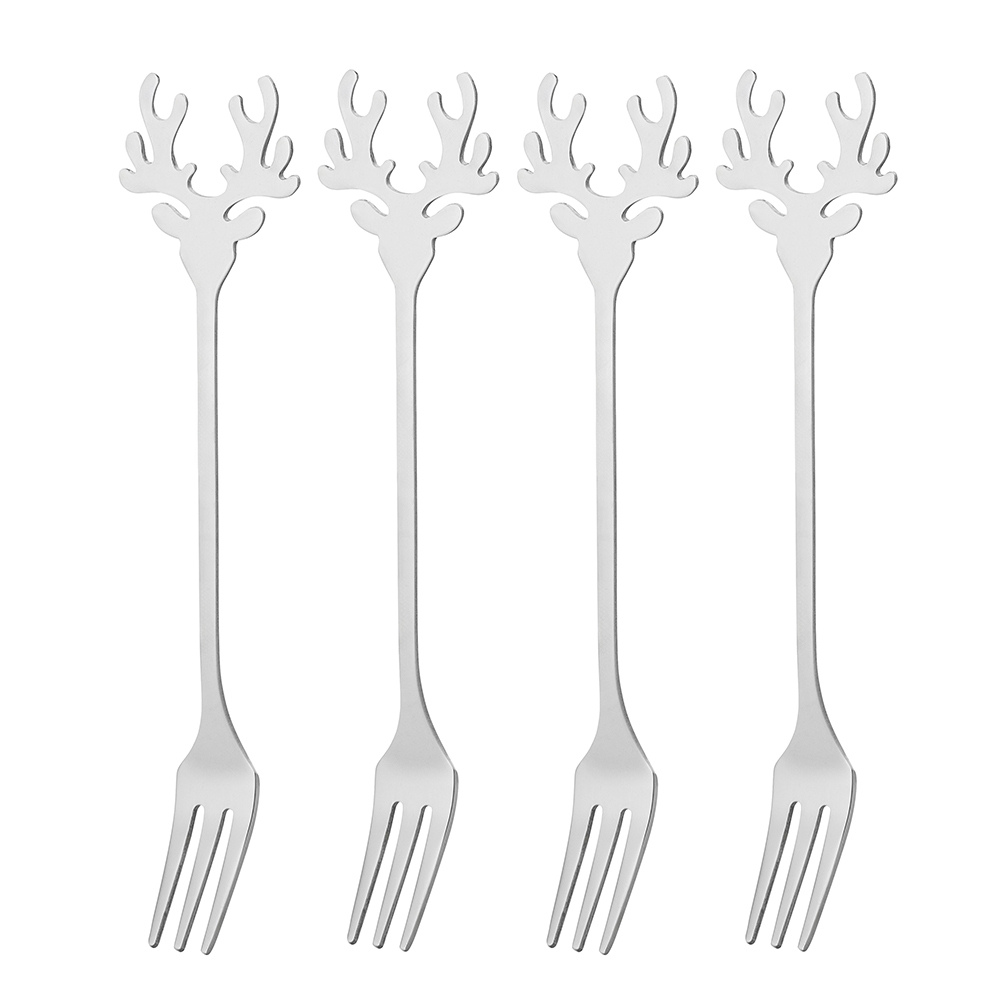 KPL. 4 WIDELCZYKÓW Z OZDOBNĄ KOŃCÓWKĄ, GŁOWA RENIFERA, W ODCIENIU SREBRA COLOR BOX