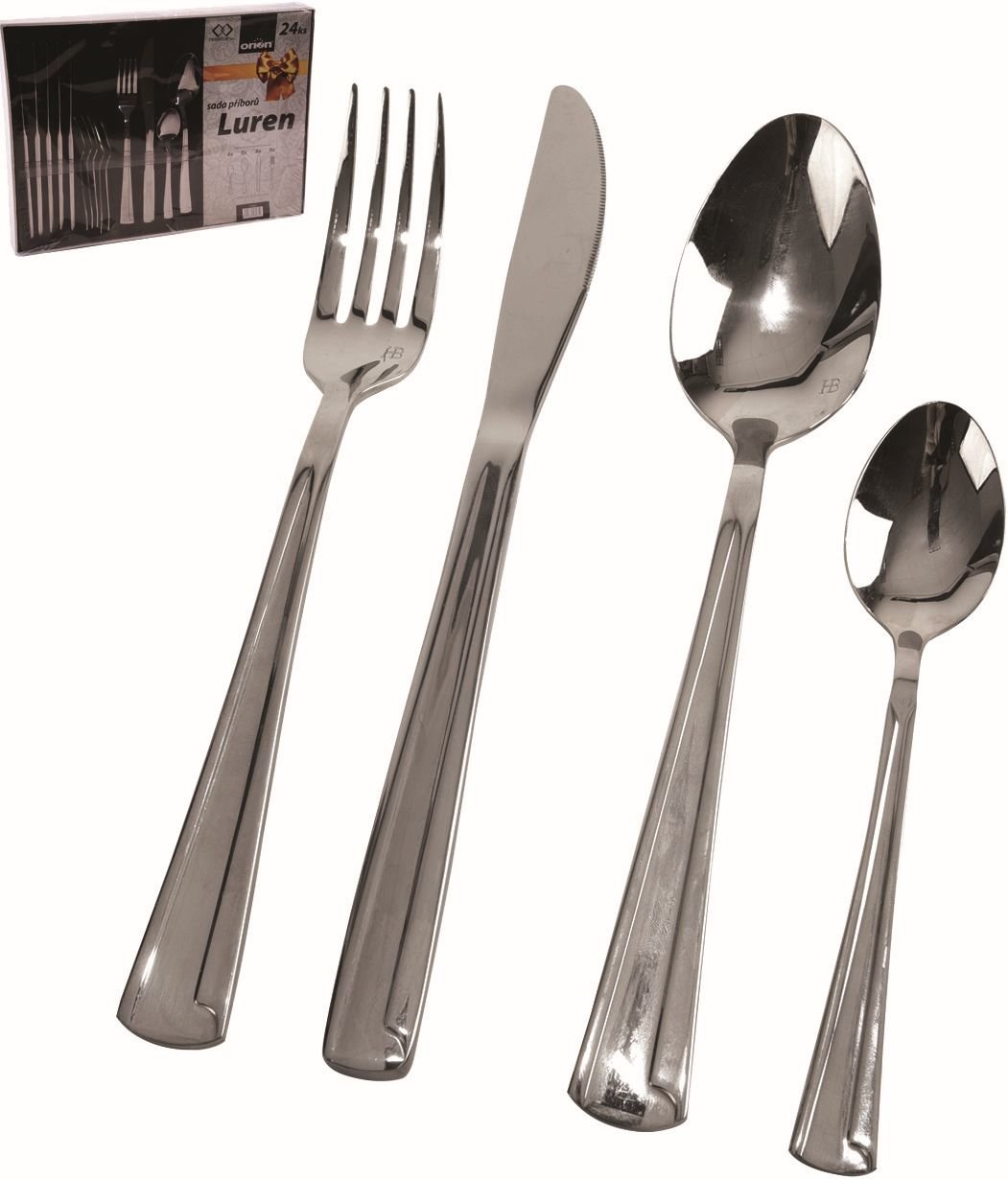 Sada příborů s protlačovaným vzorem. Sada obsahuje - 6x lžíce (délka 20cm), 6x vidlička (délka 20cm), 6x nůž (délka 23cm) a 6x čajová lžička (délka 14cm). Sada 24 ks. Příbory lze mýt v myčce na nádobí, ale pokud chcete zachovat jejich lesklý a neporušený povrch, pak to vzhledem k působení čistících prostředků nedoporučujeme. Materiál - kvalitní nerez.
