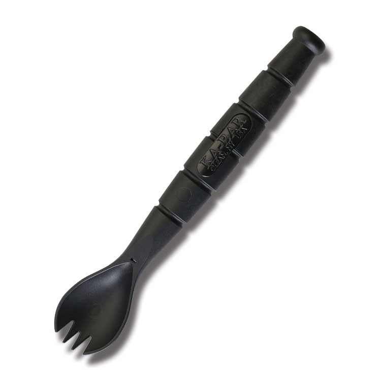 Dokonalý doplněk pro každého turistu či dobrodruha. Kombinuje v sobě tři základní nástroje: lžíci, vidličku a taktický nůž.