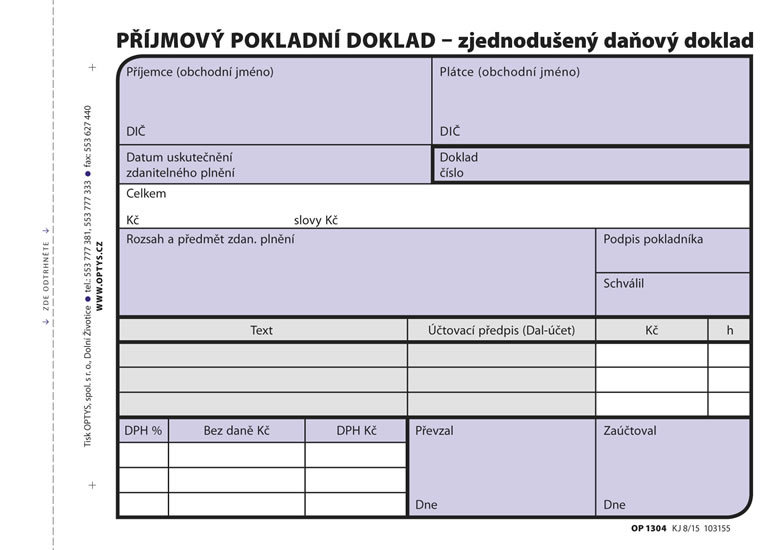 Příjmový doklad zjednodušený, A6, 100 listů, NCR