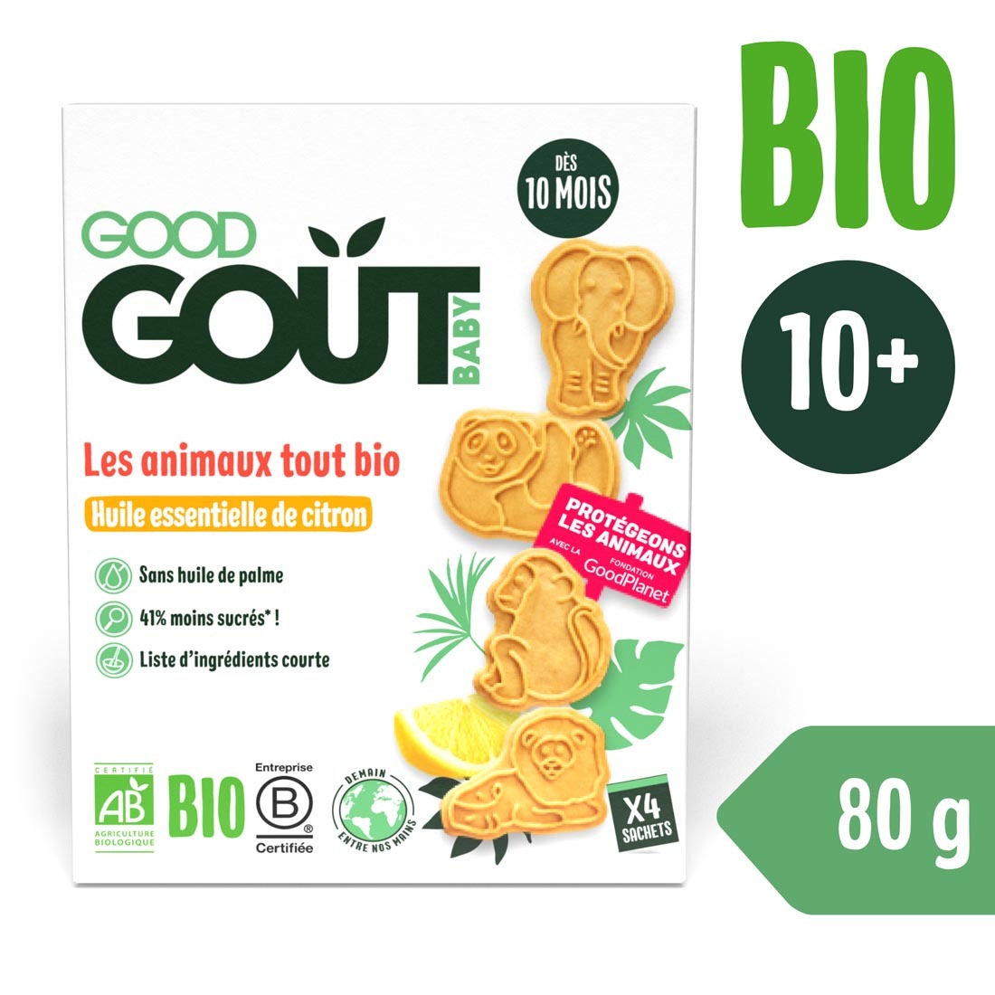 Všechna ekologická zvířata dobrého Gooda ve tvaru ohrožených zvířat jsou vhodná pro malé ručičky vašich dětí. Jedná se zejména o první dětské sušenky k jídlu, zrovna když rostou zoubky, obvykle mezi 10. a 12. měsíci. A stejně tak v Good Gout představujeme příchutě, aniž by si vaše děti zvykaly na příliš sladké chutě. Všechny sušenky jsou 100% bio, samozřejmě! Porcované sušenky v pytlíčku po 5. sušenkách se krásně vejdou i do kabelky.