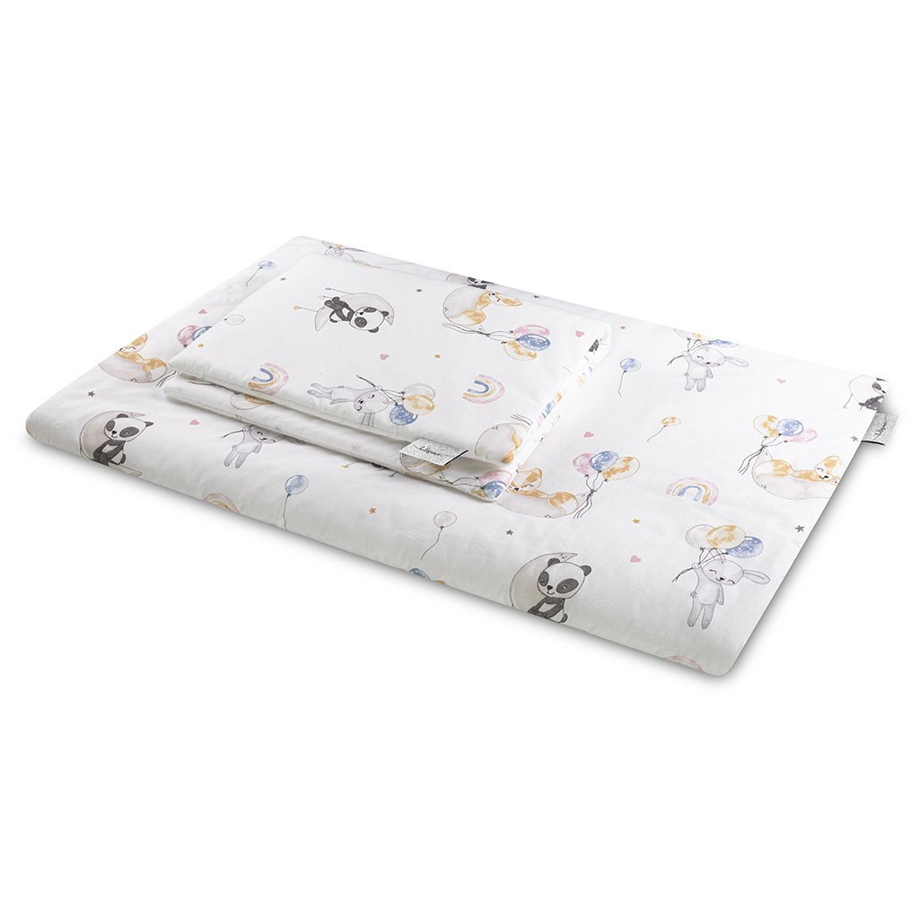 Nádherný bavlněný set do postýlky Belisima BOBO. Set obsahuje polštářek a peřinku s krásným barevným dětským motivem. Vše je vyplněno antialergickým vláknem. Set je ušitý z vysoce kvalitního bavlněného materiálu. Praktický set lze využít do postýlky, kočárku, kolébky. Bavlněný set luxusně a jemně pohladí pokožku vašeho miminka. Rozměry: polštář: cca 35x25 cm, peřinka: 75x100 cm. Složení: povlak 100% bavlna, výplň 100% polyester-antialergická výplň.