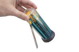 Vhodný pro materiálPlně vhodný měkké dřevo, laťovka, dřevotřísková deska, laminát, MDF, překližka, plast, ocelový plech, neželezné kovy Vlastnostikomfortní vyjmutí jednotlivých listů stisknutím tlačítka Technické údajeProvedení stopky T-stopka Rozsah dodávky2x pilové plátky HCS, hloubka řezu 8-50 mm, rychlý hrubý řez, rozteč zubů 4 mm 2x pilové plátky HCS, hloubka řezu 6-50 mm, rychlý hrubý řez, rozteč zubů 3 mm 2x pilové plátky HCS, hloubka řezu 4-20 mm, zakřivený řez, rozteč zubů 2 mm 2x pilové plátky HCS, hloubka řezu 5-30 mm, čistý řez, rozteč zubů 2,5 mm 2x pilové plátky HSS, hloubka řezu 1-3 mm, rozteč zubů 1,2 mm Balenív praktickém skladovacím pouzdře volný pohled na listy díky průhlednému vysoce transparentnímu plastovému pouzdru