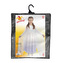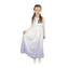 Šaty jsou vyrobeny v elegantní bílé barvě s flitry zdobenou horní částí, která dodává kostýmu nevšední třpytivý vzhled. Sukně pak přechází do bílo-fialového tylu s jemným potiskem, což celý outfit činí hravým a zároveň majestátním. Součástí kostýmu je i krásná vlečka, rovněž zdobená flitry, která dodává šatům působivý efekt při každém pohybu.