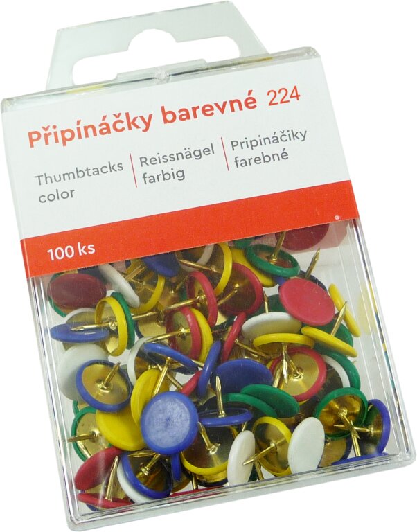 připínáčky 100ks Tempus 224 v plast.krab. barevné potahované