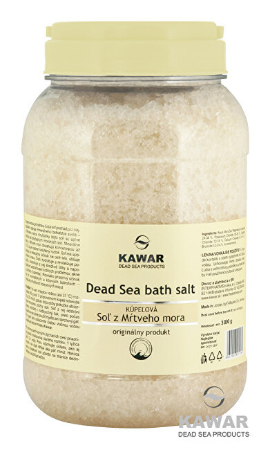 Kawar koupelová sůl z Mrtvého moře je stoprocentní přírodní a čistá sůl pocházející z největšího zdroje minerálního bohatství světa - z Mrtvého moře. Krystalky této soli jsou zcela odlišné od obyčejných mořských solí. Minerální látky v Mrtvém moři dosahují koncentraci až 32%, což je vlastně nasycený roztok. Sůl má uklidňující a relaxační účinek na celé tělo, tlumí svalovou únavu, příznivě působí při revmatických a kloubních bolestech - zlepšuje pohyblivost bolestivých míst. Čistí a revitalizuje pokožku, odstraňuje z ní škodlivé látky a napomáhá při odstraňování kožních problémů, akné a psoriázy. Kožní buňky obohacené o minerály mají vyšší schopnost absorbovat vlhkost, díky čemuž je následně pokožka svěží a pružná. Během koupele není nutné použít mýdlo ani sprchový gel, sůl z ní odstraní všechny nečistoty i nadbytečný tuk. Po koupeli se doporučuje tělo opláchnout čistou vlažnou vodou a aplikovat tělové mléko Kawar. Při onemocněních horních cest dýchacích příznivě působí inhalování slaného roztoku.