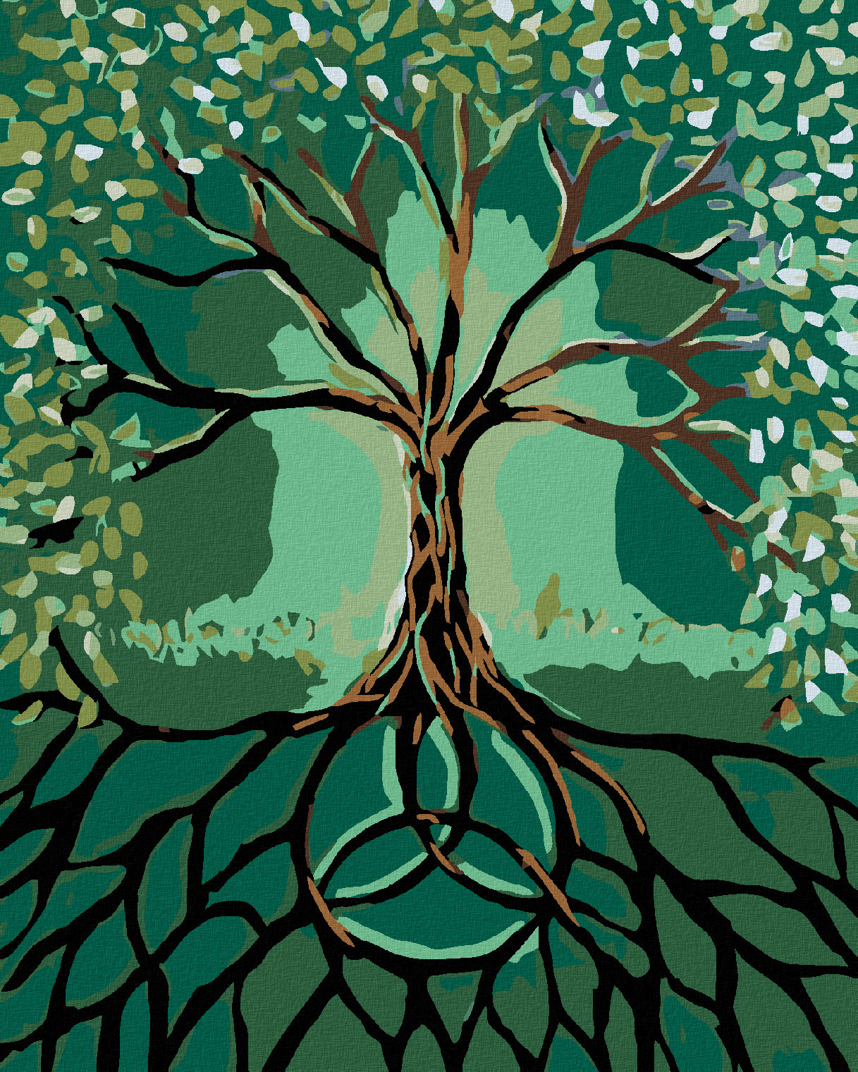 Malování podle čísel - STROM S KOŘENY - 80x100 cm, bez rámu a bez vypnutí plátna