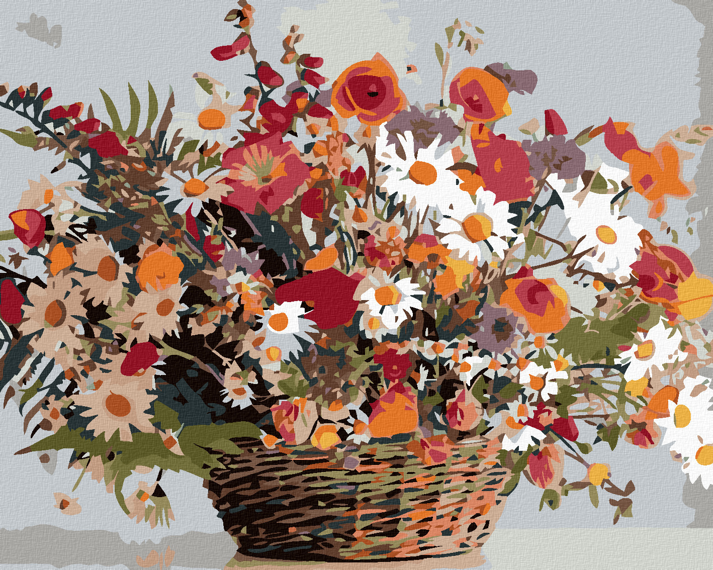 Malování podle čísel - LUČNÍ KVÍTÍ V KOŠÍKU - 40x50 cm, vypnuté plátno na rám