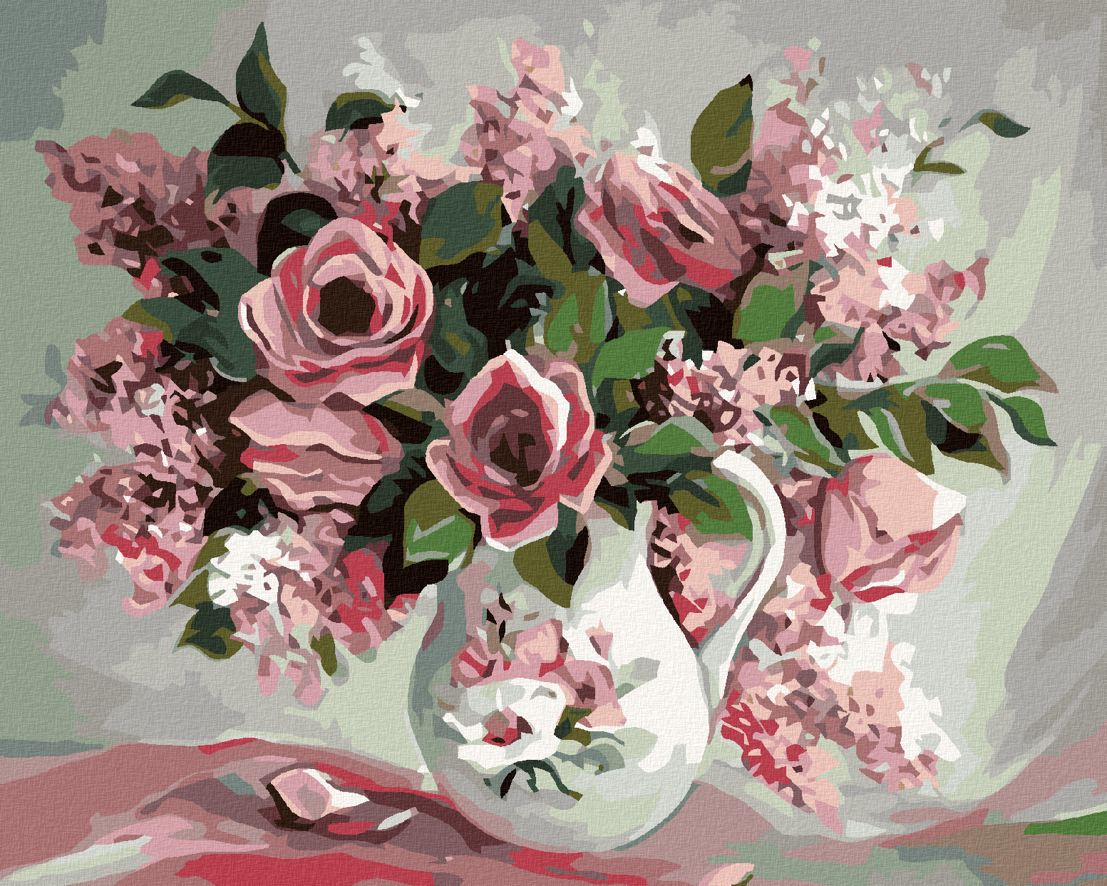 Malování podle čísel - RŮŽE A ŠEŘÍKY V MALOVANÉ VÁZE - 40x50 cm, vypnuté plátno na rám