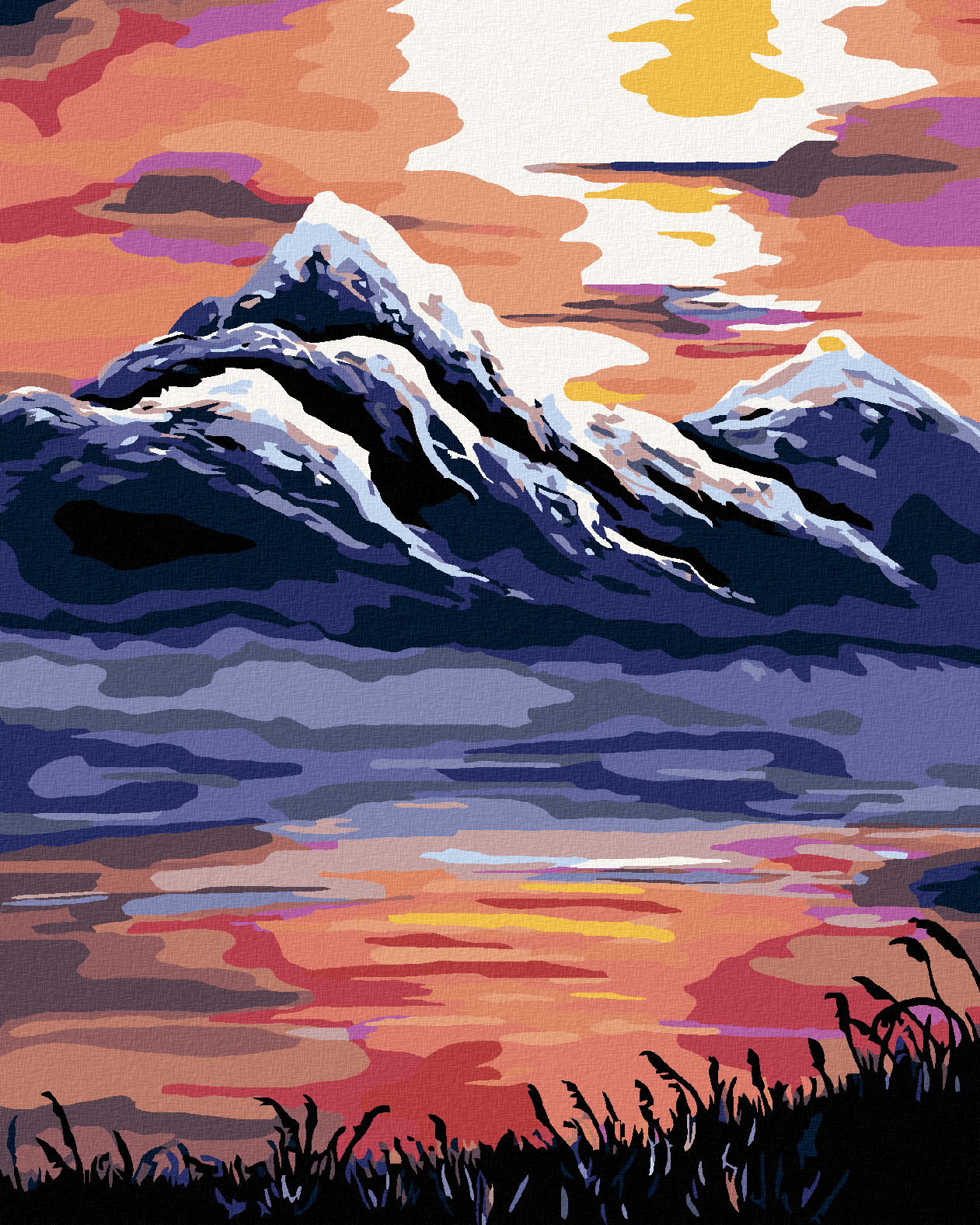 Malování podle čísel - ZÁPAD SLUNCE NAD HORAMI - 80x100 cm, bez rámu a bez vypnutí plátna